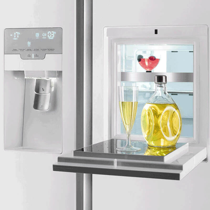 برای آنکه لازم نباشد که بطور مداوم درب یخچال را برای نوشیدن آب باز نمایید، در یخچال ساید بای ساید 32 فوت اسنوا مدل 2323 بخش آبسردکن اتوماتیک طراحی شده است. بخش بار خانگی با سامانه آرام باز شو (دیسکی) امکان دسترسی آسان و سریع به نوشیدنی و خوراکی های داخل یخچال را فراهم می نماید. بنابراین این ویژگی نیز می تواند به نوبه خود در کاهش مصرف انرژی تاثیر گذار باشد.