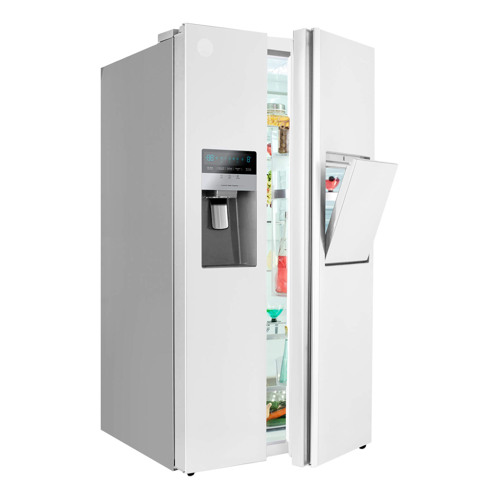 ساید بای ساید اسنوا SN8-2323GW دارای بدنه ای به رنگ سفید متالیک و گنجایش 32 فوت می باشد. از طریق نمایشگر LED این محصول می توانید وضعیت کلی دستگاه را کنترل نمایید. روشنایی بکار رفته در ساید بای ساید اسنوا SN8-2323GW از نوع LED بوده که نسبت به سایر روشنایی ها مصرف انرژی پایین تری داشته و گرمای کم تری نیز تولید می کند.