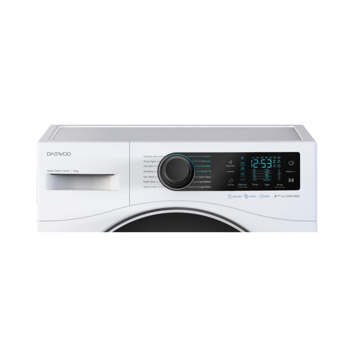 لباسشویی دوو 9 کیلویی مدل 9000C مجهز به تکنولوژی Steam Care یا شستشو با بخار است. این فناوری باعث از بین بردن همزمان لکه، چربی، بوی ناخوشایند و صرفه جویی در انرژی و مقدار مواد شوینده می شود. ماشین لباسشویی دوو DWK-9000C دارای گزینه اضافه کردن لباس حین شستشو بوده که بتوانید با توقف موقت لباسشویی، لباس های جا مانده را به دستگاه اضافه کنید.