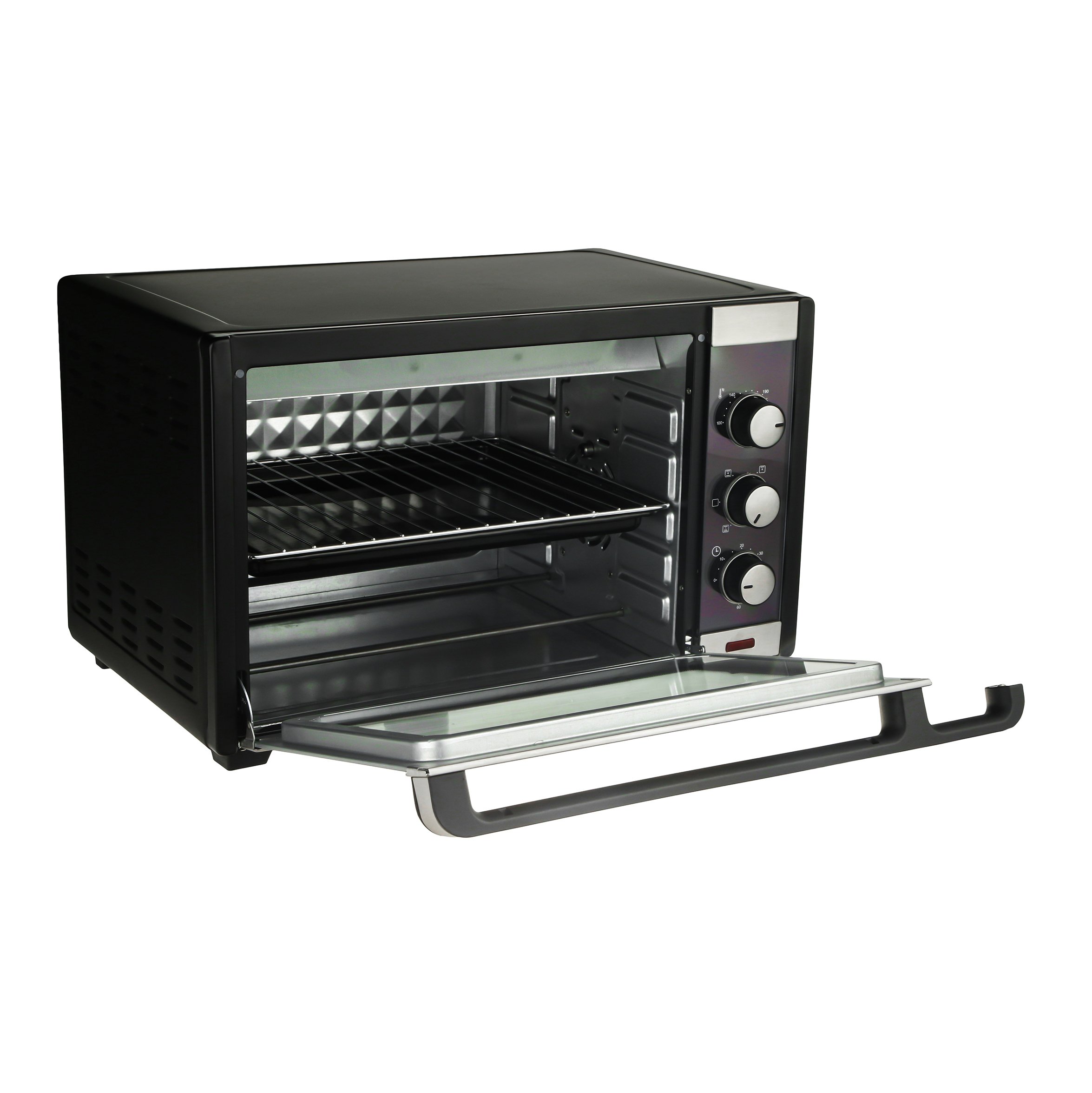 گريد انرژی A – دارای لامپ داخلی – سینی جهت طبخ مواد غذایی – المنت حرارتی استیل ضد زنگ – قابل تنظیم دما از 100 تا 230 درجه سانتیگراد – سیخ جوجه گردان – دارای سینی روغن گیر کف آون – مجهز به فن کانوکشن – امکان حرارت دهی در سه حالت بالا، پایین و هر دو همزمان – کلید چرخشی – درب شیشه ای – قابلیت تنظیم ارتفاع سینی |