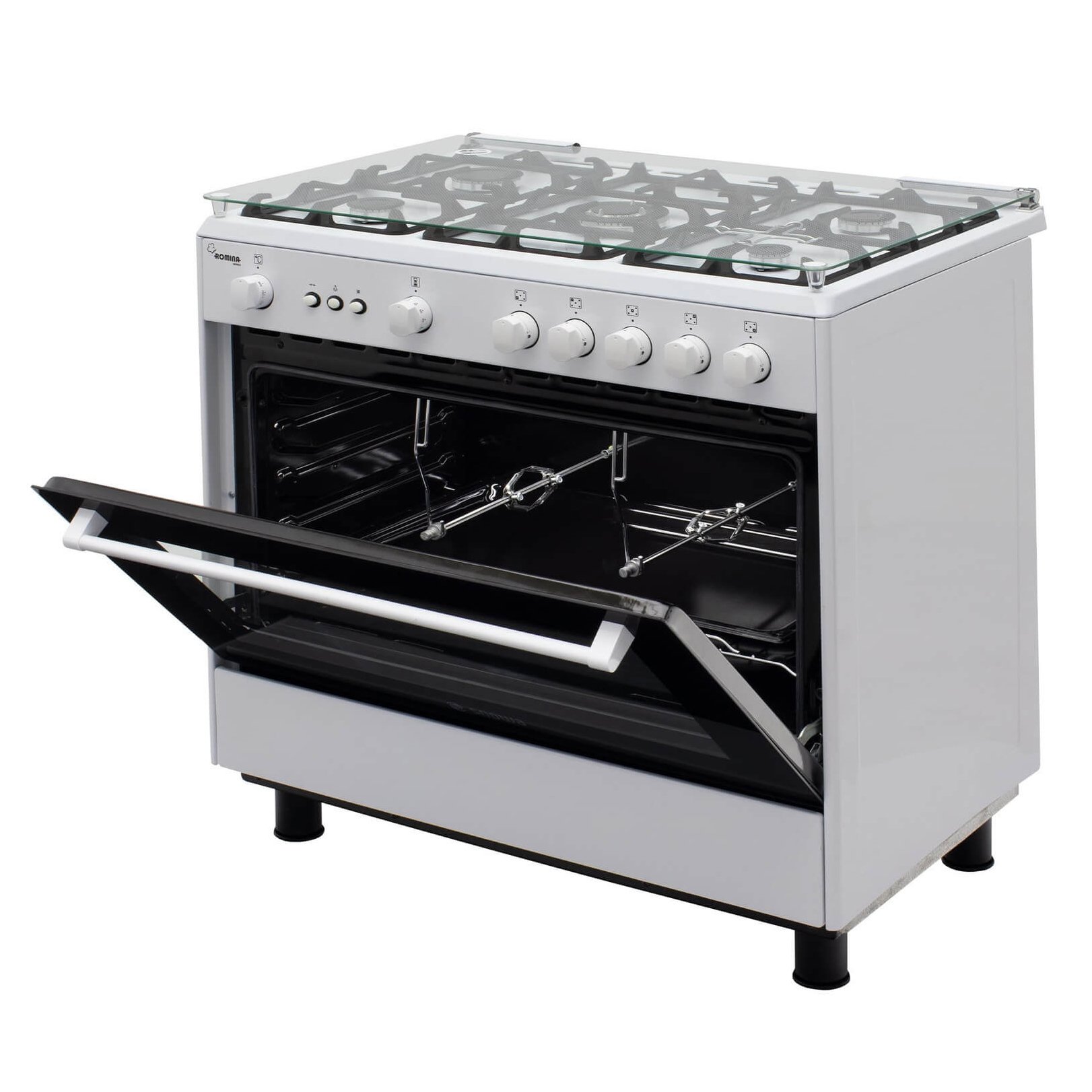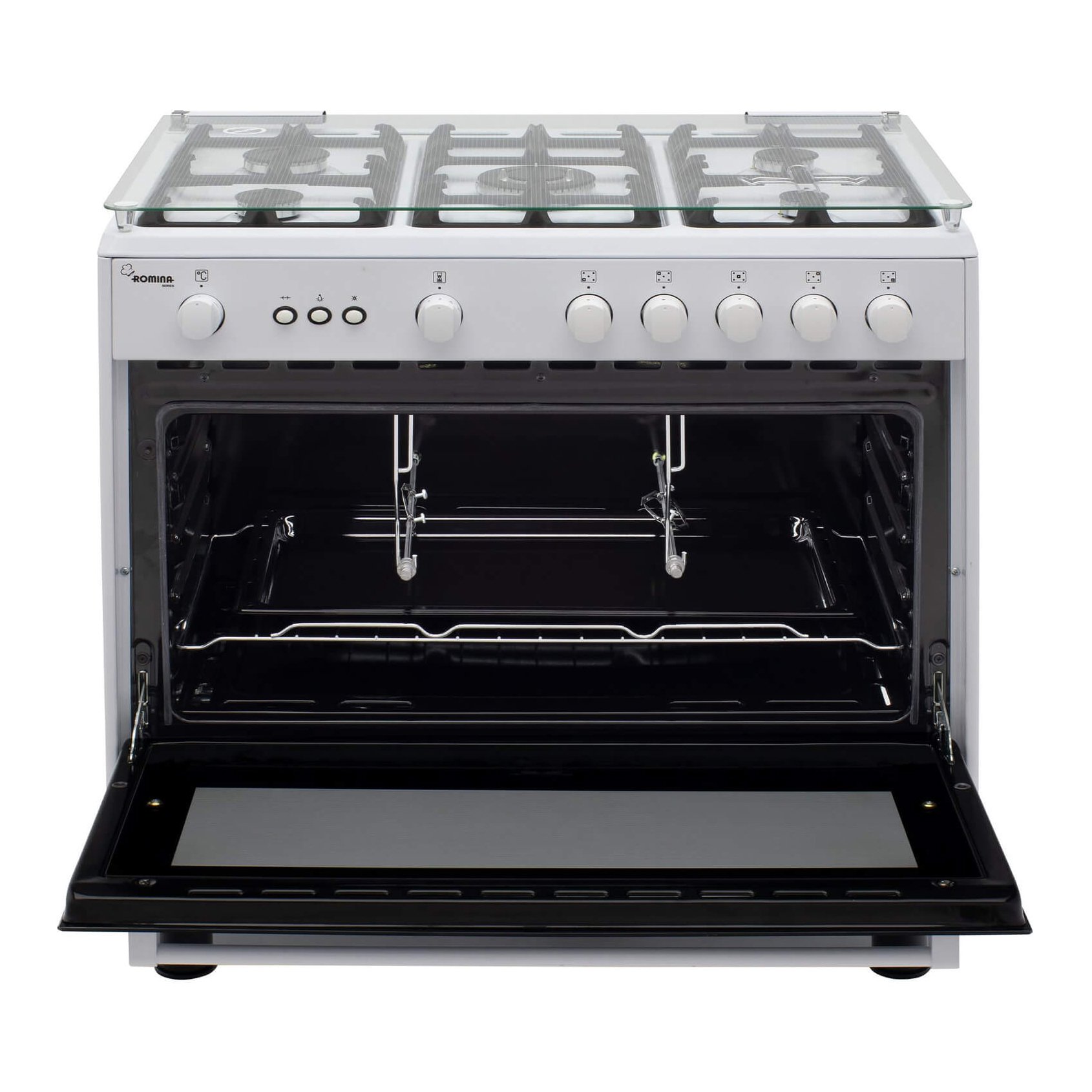 جوجه گردان اجاق گاز رومینا اسنوا مدل SGC5-11101 به دلیل طراحی خاصی که دارد می تواند براحتی و با سرعت بالا مرغ های بریان را برای مهمان ها آماده نماید. بر روی بدنه این اجاق گاز 5 عدد ولوم مقاوم در برابر حرارت تعبیه شده که با گرمای فر، نسوخته و دچار تغییر حالت نمی شود. 5 عدد شعله متفاوت در این گاز طراحی شده تا بتوانید ظروف بزرگ تا کوچک را روی شعله های مناسب آن قرار دهید.