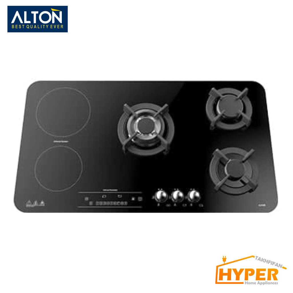 دارای 3 شعله گازی و 2 شعله برقی – صفحه تاچ لمسی برای شعله ها برقی – شعله پلوپز در وسط – امکان کنترل المنت ها برای 9 دمای متفاوت – تایمر برای شعله های برقی – پوشش آسان تمیز شونده برای روغنگیرها – سپر حرارتی – سر شعله SABAF – سر شعله پلوپز با راندمان بالا – امکان تنظیم مجزا – توان حرارتی: مشعل بزرگ : 2/3KW، مشعل پلوپز 3/1KW، مشعل کوچک 1/2KW، مشعل متوسط 1/75KW |