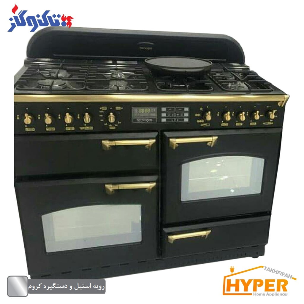 فندک الکتریکی برای فر – دارای 3 فر( فر برقی: 33 لیتر – فر و گریل گازی: 52 لیتر – کابین گریل برقی: 20 لیتر) – دارای سرخ کن – چراغ داخل فر – صفحه لعاب سلف کلین – دارای گریل – زمان سنج (هشدار اتمام پخت) – دارای گرمخانه – دارای دو موتور جوجه گردان – دارای یک شعله زماندار در سمت چپ جلو |