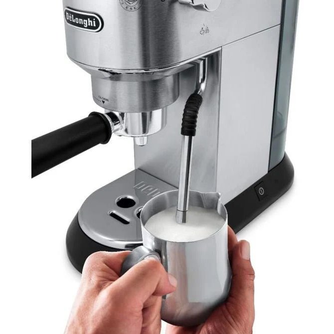 اسپرسوساز 885 استیل دلونگی به یک نازل بخار باکیفیت از جنس فولادی برخوردار بوده و تولید کف یا فوم شیر را عهده دار است. گرم نگهدار فنجان آن نیز در قسمت بالای دستگاه قرار گرفته و چون دستگاه فاقد آسیاب قهوه می باشد، امکان استفاده از پودر قهوه امکان پذیر است. مخزن آب دستگاه 1100 میلی لیتر ظرفیت دارد و کاربر می تواند با استفاده از نشانگر سطح آب، میزان آب مخزن را کنترل نماید.