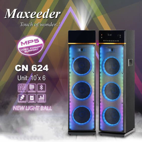 اسپیکر مکسیدر CN624 از سری MX-DJ3102 برند Maxeeder می باشد. این محصول با طراحی خیره کننده دو تکه، از دو یونیت قدرتمند چوبی ساخته شده و با صدای پر قدرتش کاربران را شگفت زده می کند. اسپیکر مکسیدر CN624 از پر طرفدارترین پخش کننده های موجود در بازار می باشد و کاربران می توانند آنها را به صورت کنار هم یا جدا و در دو طرف تلویزیون قرار داده و از صدای آن لذت ببرند. طنین صدای پخش شده از این اسپیکر جذابیت موزیک را برای عاشقان موسیقی چند برابر می کند.