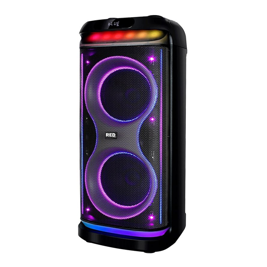 اسپیکر ردتون R100 با توان 80 وات و باتری 4000 میلی آمپر مجهز به قابلیت یلوتوث، نورپردازی چند رنگ، نمایشگر، دو عدد میکروفون بی سیم حرفه ای و درگاه های ارتباطی می باشد.