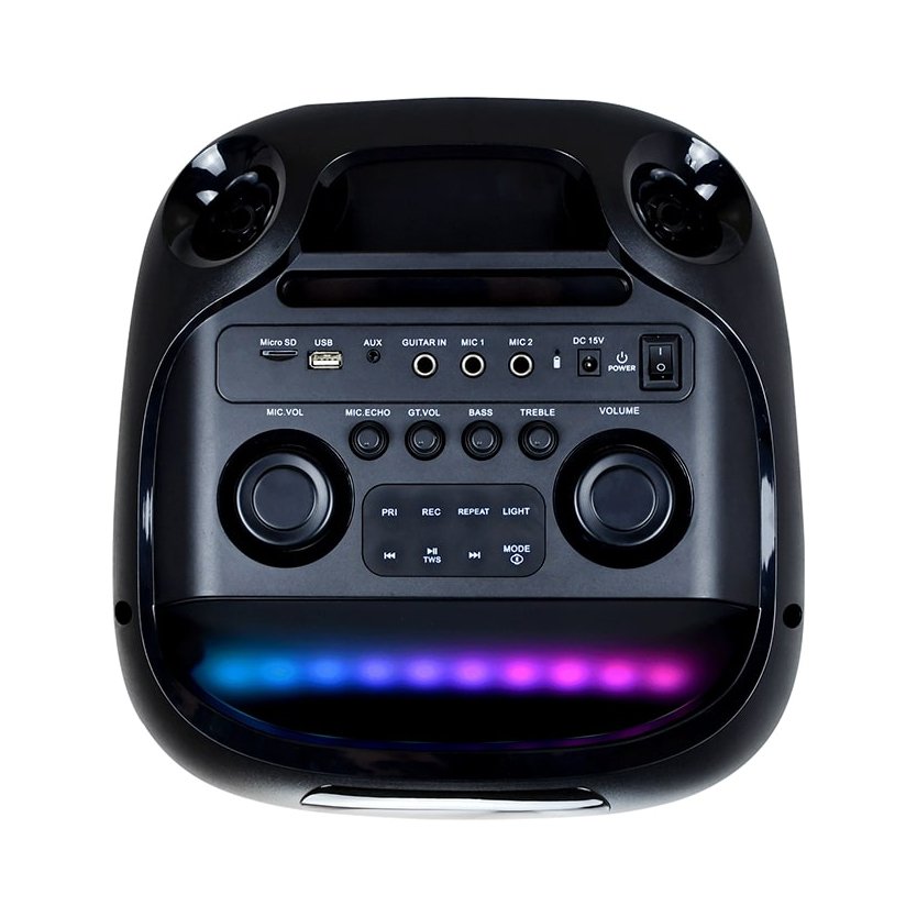 اسپیکر بلوتوثی مناسب برای سفر، فضاهای باز و مهمانیهای طولانی – قابل حمل – طراحی مدرن همراه با نورپردازی RGB – اسپیکر قابل شارژ مجهز به باتری 7000 میلی آمپربا نگهداری 3 الی 5 ساعت – دارای 2 میکروفون بی سیم – دو درگاه میکروفون – دکمه روشن / خاموش – استریوی بیسیم واقعی TWS – امپدانس 4 اهم – واحد درایو: "1 + "8×2 – فرکانس میکروفون بی سیم 677 مگاهرتز / 660 مگاهرتز – حساسیت ورودی 92 دسیبل |