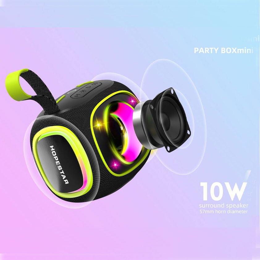 از تکنولوژی TWS این مدل از اسپیکر Hopestar می توانید برای ایجاد صدای استریوی واقعی استفاده نمایید. با وجود درگاه های AUX، TF و USB، اتصال لوازمی مانند موبایل و لپتاپ (از طریق کابل)، فلش مموری و کارت حافظه به این دستگاه امکان پذیر می باشد. قیمت اسپیکر هوپ استار مدل Party Boxmini به نسبت داشتن امکانات کاربردی، پخش صدای واضح با بیس قوی و طراحی زیبای بدنه، مناسب بوده و ارزش خرید بالایی نیز دارد.