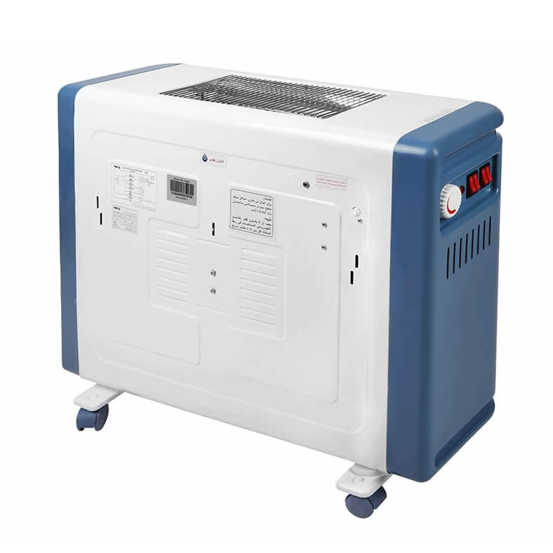 نصب بر روی زمین – دارای فن – دارای 6 المنت (4 عدد جلو و 2 عدد سقف) – برق ورودی 220 ولت – ولوم تنظیم کننده درجه حرارت – لامپ نشانگر – پایه ثابت و بدون چرخ – دارای ترموستات – تنظیمات حرارت 600/1200/1800/2400/2800 وات – سیستم قطع خودکار (ایمنی در صورت واژگونی) – کنترل یک المنت جلو با ترموستات – انتقال گرما بصورت جا به جایی و تابشی – جهت جریان گرما به سمت جلو و بالا – دارای 4 کلید برای المنت های جلو، بالا و پایین، المنت سقف و فن |