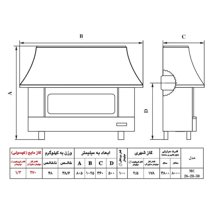 بخاری گازی شومینه ای نیک کالا MC26 مدل سیمین