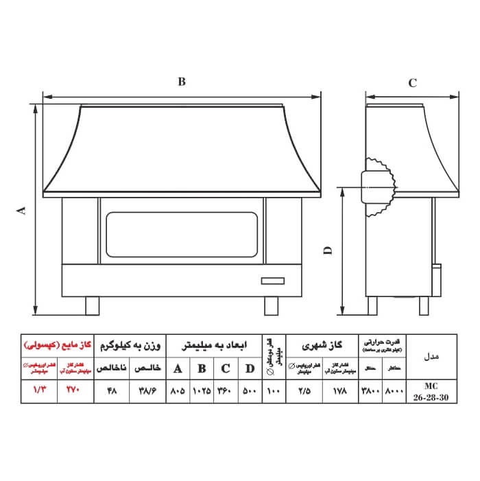 دارای جرقه زن – شیشه ایمن – نحوه استفاده بصورت زمینی – هیزم سرامیکی 8 تکه – دارای سنسور اکسی پیلوت – کم مصرف – قطع خودکار گاز در صورت کاهش 18 درصدی اکسیژن |