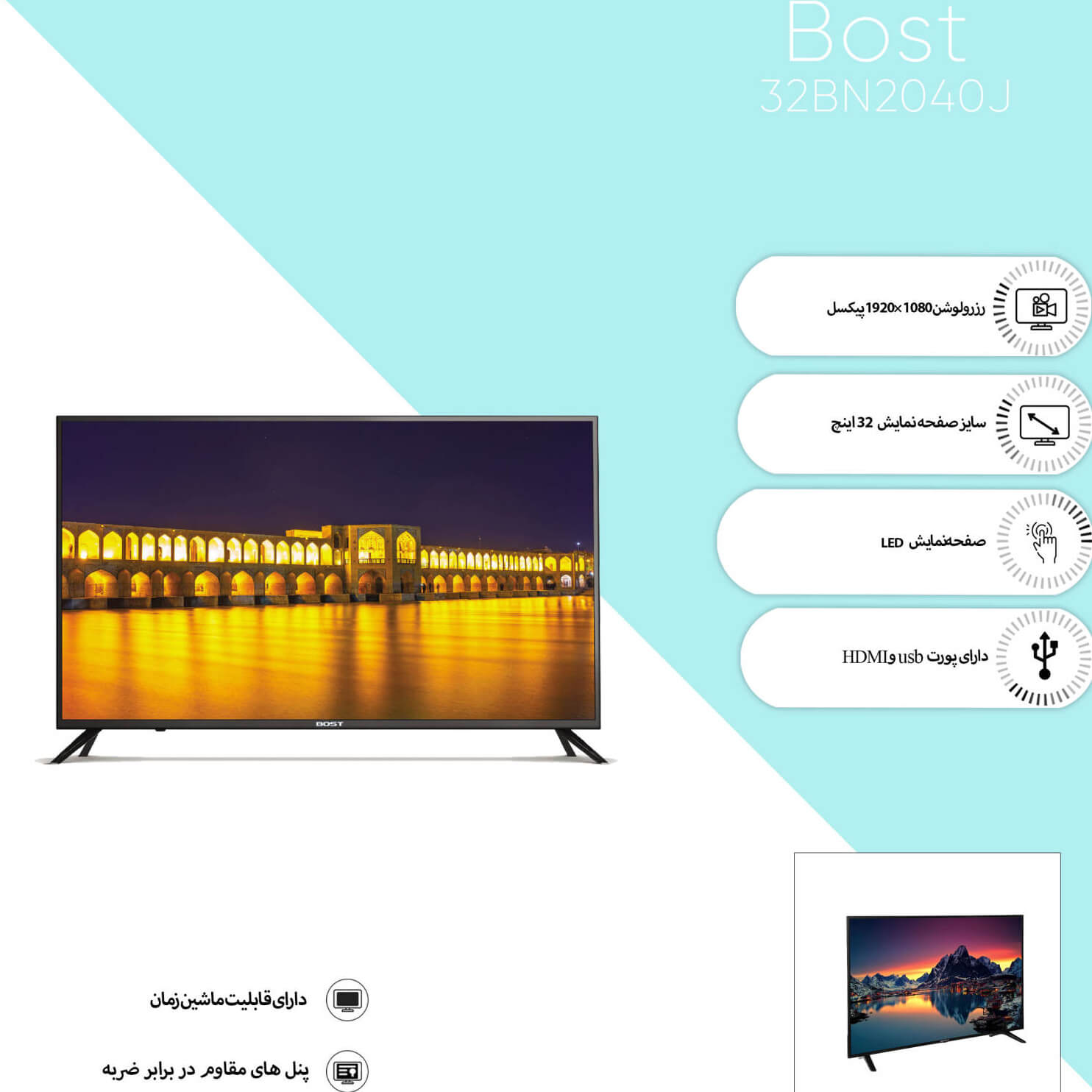 تلویزیون ال ای دی بست 32BN2040J دارای کیفیت تصویر HD و با سلیز 32 اینچی خود مناسب محل کار، اتاق و سالن های کوچک است.