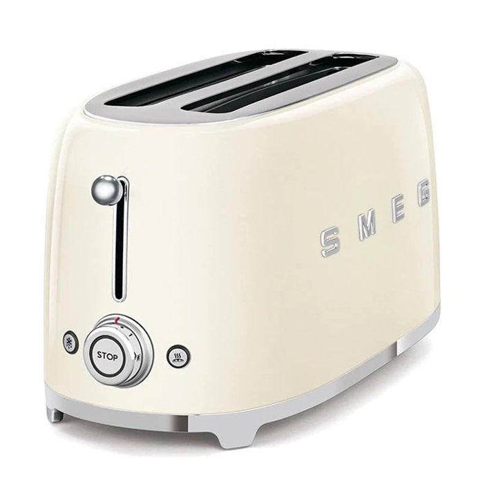 توستر 2 اسلایس بزرگ اسمگ TSF02CR که توسط برند معروف و خوشنام اسمگ Smeg ساخته شده است، به دلیل کیفیت فوق العاده و طراحی لوکس و بی نظیر محصولی پرفروش در بازار به شمار می آید و در رنگ های متنوع و جذاب در اختیار خریداران و مشتریان قرار گرفته است. این مدل با بدنه ای ساخته شده از جنس استیل ضد زنگ براق و جلا داده شده، ساختاری زیبا و بسیار مقاوم دارد و برای خانواده های متوسط ایده آل می باشد. قیمت توستر 2 اسلایس بزرگ اسمگ TSF02CR نسبت به عملکرد عالی آن سیار مناسب می باشد و لذت خوردن نان گرم را به کاربران هدیه می بخشد.