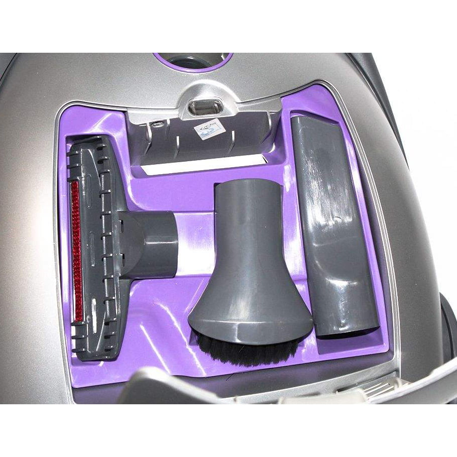 سیم جمع کن خودکار – شعاع عملکرد 7 متر – کابل برق 5 متر – برس اصلی – برس مبل، پرده، گوشه پاک کن – دارای سه عدد چرخ در زیر محصول – دارای ناب کشویی روی بدنه اصلی برای تنظیم قدرت مکش – میکرو فیلتر در ورودی و مجموعه میکروفیلتر خوشبو و فیلتر اسفنجی در خروجی – قاب نگهدارنده فیلتر های خروجی – پک خوشبو کننده هوا قابل استفاده در فضای اتاق سرویس بهداشتی، کمد کابینت و فضای ماشین – پدال on/off روی بدنه اصلی – سوپاپ مکش برای محافظت از موتور در صورت بسته شدن ناخواسته دهانه ورودی – مجهز به سیستم پارک |