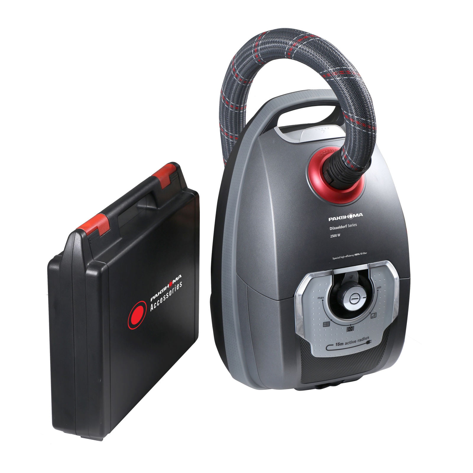سری دوسلدرف – طراحی ارگونومی محصول – سیم جمع کن اتوماتیک – كيسه قابل تعويض – قابلیت استفاده از کیسه دائمی قابل شستشو و یا یکبار مصرف – تنظیم قدرت مکش – کیف لوازم جانبی شامل چهار کیسه ضد حساسیت – نشانگر LED جهت نمایش پر بودن مخزن – لوله تلسکوپی از جنس الیاف کنفی – طول کابل برق 12 متر – شعاع کارکرد 15 متر – دارای 3 سری