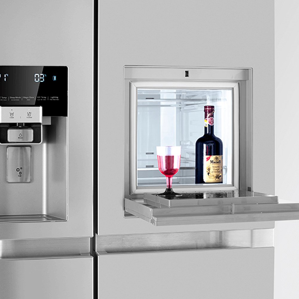 درب یخچال و فریزر در ساید بای ساید دوو سری پرایم 32 فوت مدل SXi20-21S هر دو به نوار درزگیر آنتی باکتریال مجهز است و از ورود هر گونه آلودگی و میکروب به داخل کابین و در نتیجه فاسد شدن مواد غذایی، میوه و سبزیجات جلوگیری می کند. این محصول دارای آبسردکن اتومات روی درب فریزر و یخساز اتوماتیک با قابلیت غیر فعال سازی است و به شیر آب شهری متصل می شود. همچنین برای دسترسی سریع و آسان کاربر به اقلام پر مصرف و جلوگیری از هدررفت انرژی و هوای خنک درون یخچال، این سای بای ساید به هوم بار (بار خانگی) روی درب یخچال نیز مجهز می باشد.