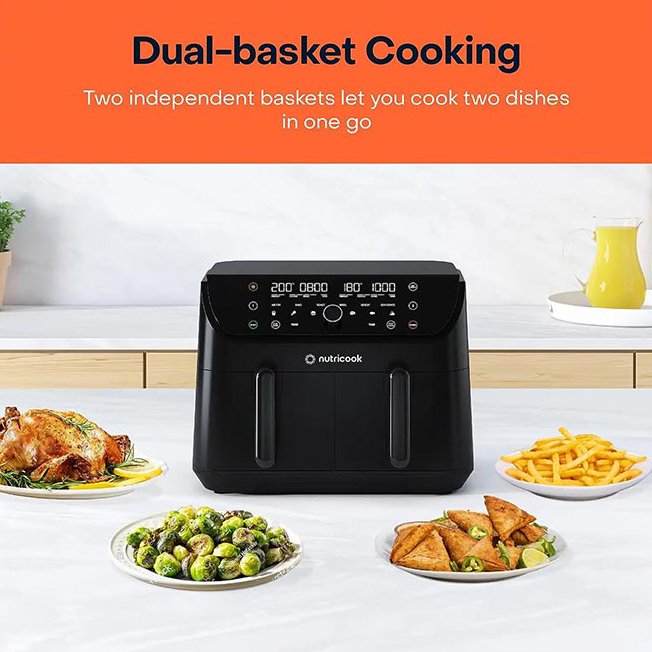 ظرفیت 8.5 لیتری سرخ کن دوقلو نوتریکوک مدل AFD185، آن را به گزینه ای ایده آل برای خانواده های پر جمعیت 7 تا 8 نفر تبدیل کرده و امکان استفاده همزمان از هر دو سبد پخت برای آماده سازی سیب زمینی، مرغ، میگو، ماهی، گوشت، همبرگر، سبزیجات، اسنک، پیتزا، دسر، و … را توسط برنامه Sync Cook به شما می دهد. به همین دلیل یکی از محصولات حرفه ای و شناخته شده در بازار بوده و با قیمتی عالی در اختیار شما قرار گرفته است.