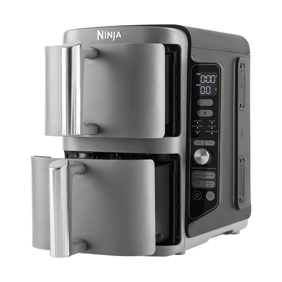 سرخ کن دوقلو SL400 خاکستری نینجا بدنه ای از جنس پلاستیک مقاوم، دستگیره استیل و پلاستیک و پایه استیل ضد زنگ دارد و به 6 برنامه متنوع مجهز است که امکان خشک کردن میوه و سبزیجات، پختن، گرم کردن مجدد، ترد کردن، کباب کردن و سرخ کردن انواع مواد غذایی مانند سیب زمینی، گوشت، مرغ، ماهی، اسنک، پیتزا، دسر، همبرگر، میگو و … را به کاربر خواهد داد.