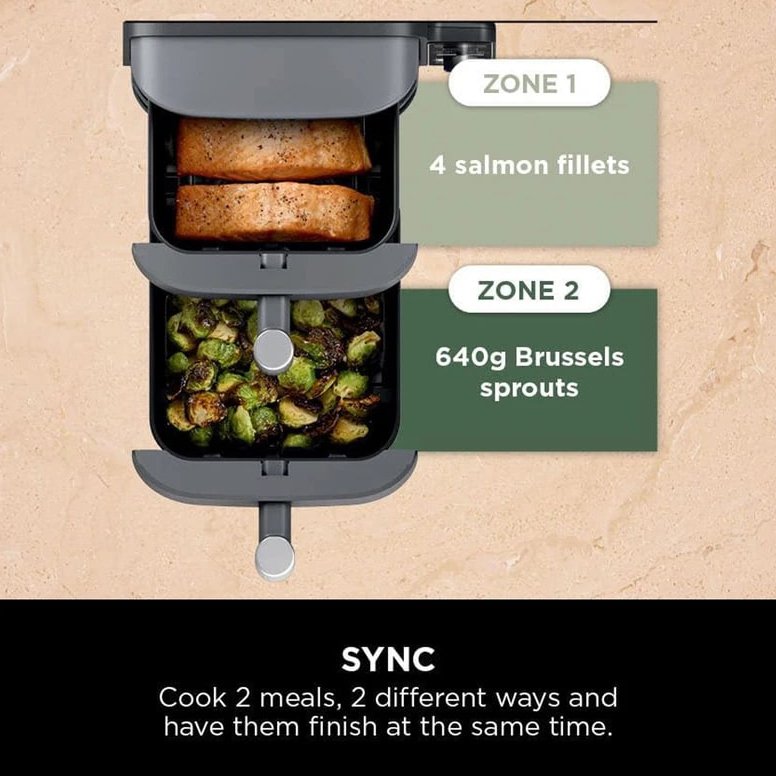 سرخ کن دوقلو نینجا SL400 با دو سبد 4.75 لیتری، توان 2470w، قطع کن خودکار، 6 برنامه، نمایشگر لمسی، تنظیم دما و قابلیت MAX CRISP برای 6 تا 8 نفر مناسب است.
