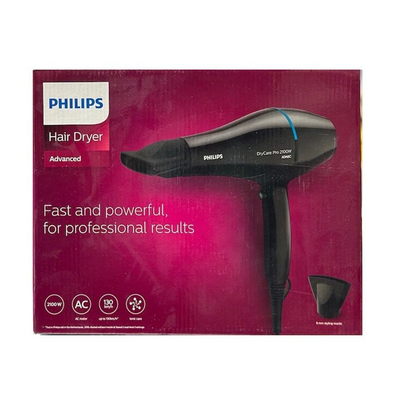 سشوار فیلیپس BHD272 با فناوری تولید یون، سیم 1.8m، متمرکز کننده، موتور 2100 وات AC، باد سرد، تنظیم دما 3 و سرعت باد 2 حالته، قابلیت خشک و صاف کردن مو را دارد.