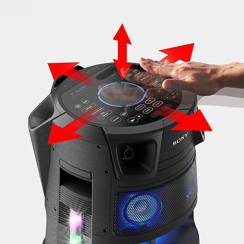 پخش صدا در اطراف سیستم صوتی سونی MHC-V83D از طریق اسپیکرهای جاسازی شده در بخشهای مختلف و فناوریهای صوتی به صورت 360 درجه فراهم شده است.