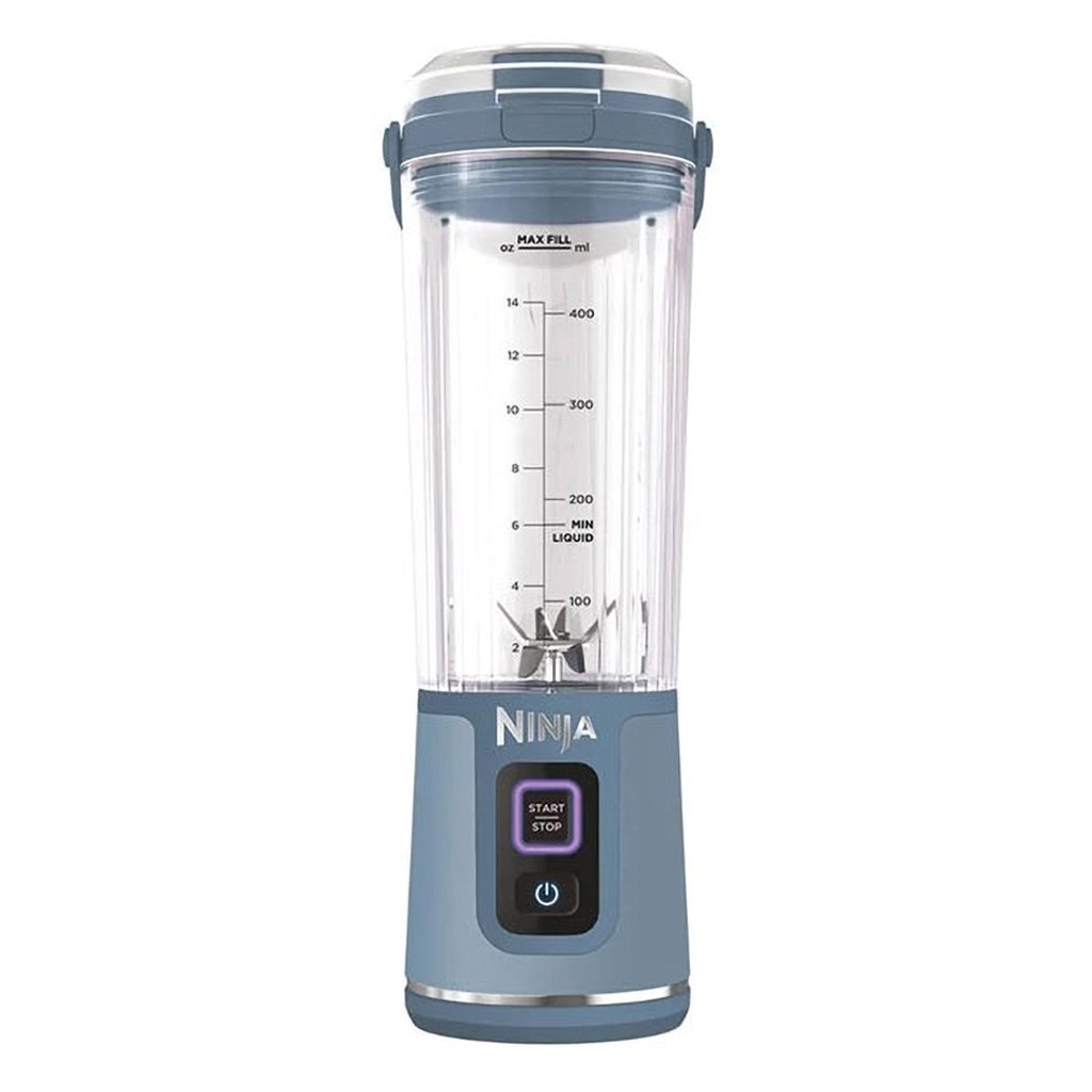 شیکر نینجا BC151BL آبی دارای پارچ پلاستیکی 0.53 لیتری، باتری قابل شارژ لیتیوم یونی، کنترل دکمه ای لمسی، تیغه استیل، تنظیم تک سرعته و درب ضد نشت است.
