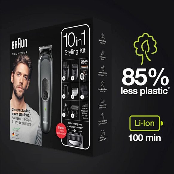 ست ماشین اصلاح براون مدل MGK7331 به خاصیت ضد آب مجهز است و کاربر می تواند زیر دوش حمام و یا هنگام استفاده از فوم یا ژل از آن استفاده نماید. اصلاح موهای ریش، صورت، گوش، بینی و بدن با این ماشین اصلاح امکان پذیر است و می تواند تمام موهای نازک و ضخیم را به طور یکدست و یکنواخت اصلاح کند. تکنولوژی AutoSense در این مدل میزان تراکم ریش را هر چند ثانیه یکبار اندازه می گیرد و قدرت موتور را بر اساس میزان مو تنظیم می کند.