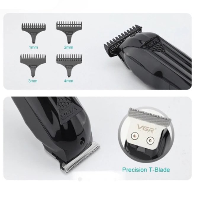 ماشین اصلاح وی جی آر V-982 دارای موتور DC 9000rpm، باتری Li-ion 1800mah، عملکرد توربو، سیستم خنک کننده فن، تیغه های فولاد سکویی، 4 شانه مختلف و نمایشگر LED است.