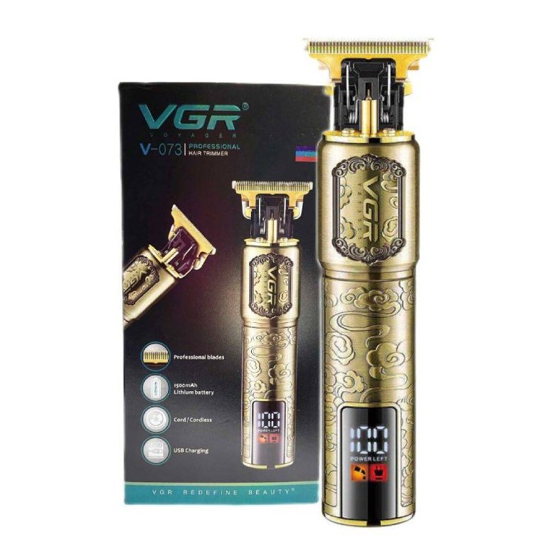 ماشین اصلاح وی جی آر VGR V-073 دارای عملکرد بی سیم، باتری لیتیوم یون 1500mah، نمایشگر LED، تکنولوژی برش مستقیم، تیغه استیل ضد زنگ، 4 شانه، خط زن و صفر زن است.