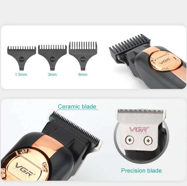 ماشین اصلاح وی جی آر VGR V-941 با 3 شانه، تکنولوژی برش مستقیم، صفر زن، خط زن، تیغه استیل، باتری لیتیوم یون 2000mah، به 2 صورت باسیم و بی سیم قابل استفاده است.