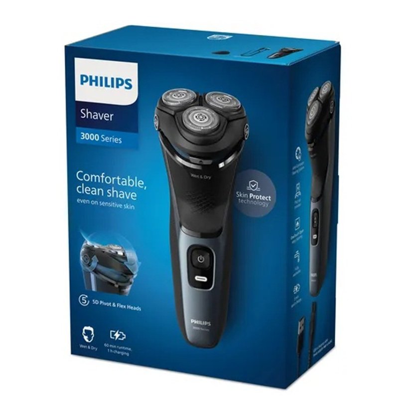 ماشین ریش تراش فیلیپس S3144 دارای خط زن و صفر زن، عملکرد ضد آب، باتری لیتیوم یون، سری 5 بعدی با 27 تیغه PowerCut خود تیزشونده و تکنولوژی برش چرخشی می بشد.