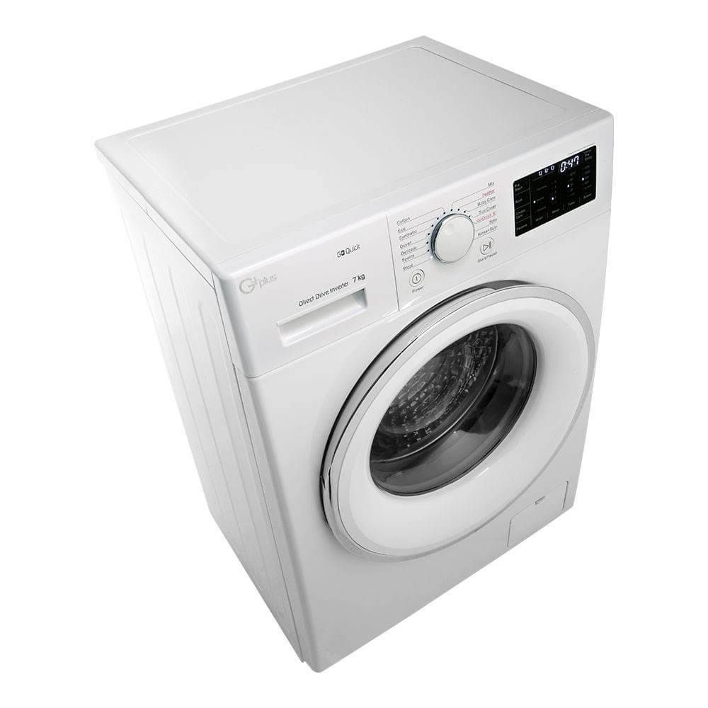 ماشین لباسشویی جی پلاس GWM-L7025W با ظرفیتی 7 کیلویی، دارای 14 برنامه اصلی و 6 برنامه تکمیلی ست که میتواند انواع مختلف لباس را بصورت حرفه ای شستشو دهد.
