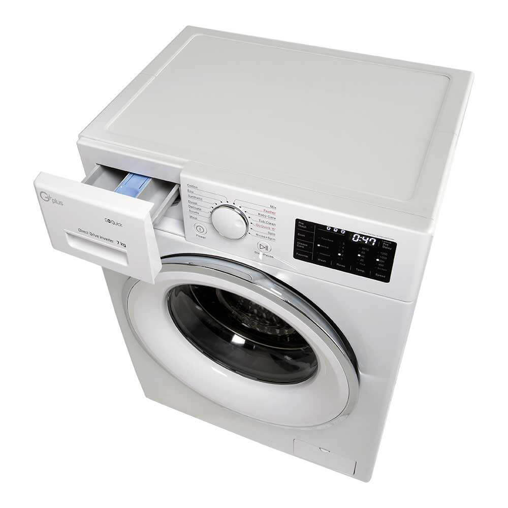 یکی از برنامه های کمک کننده در زمان کمبود وقت برای شستشوی طولانی مدت لباس ها، گزینه “Go Quick” در ماشین لباسشویی جی پلاس GWM-L7025W می باشد. این برنامه لباس های شما را در مدت زمان کوتاه تری نسبت به حالت عادی، شستشو می دهد.
