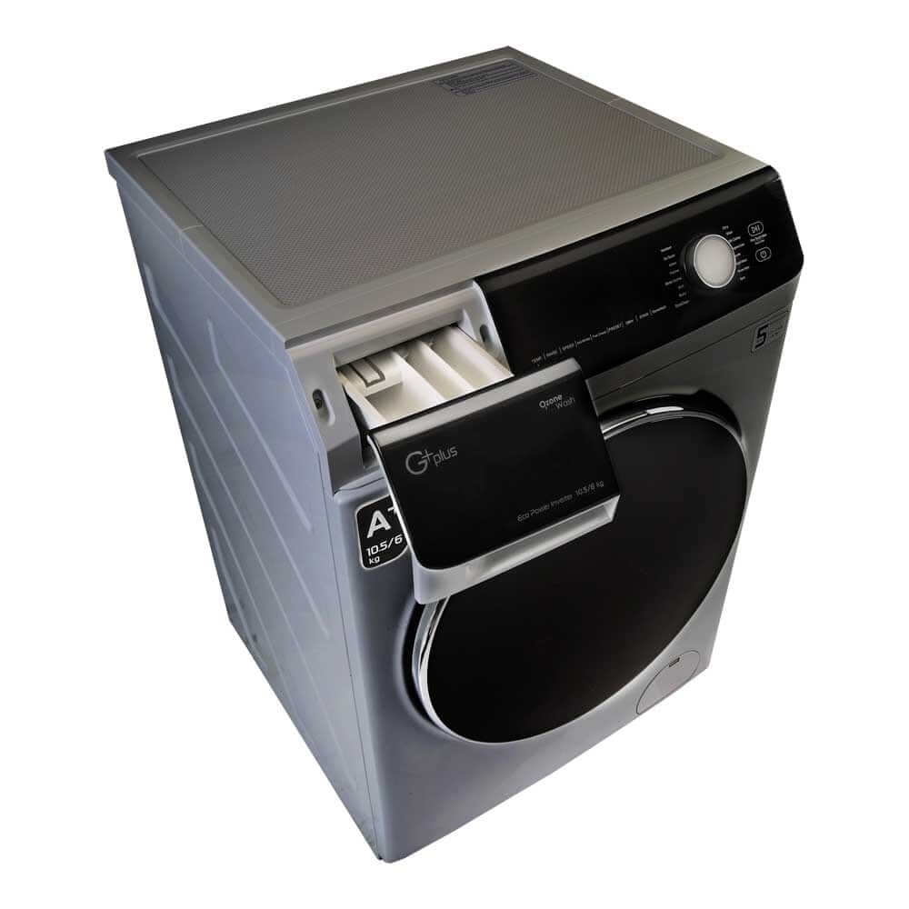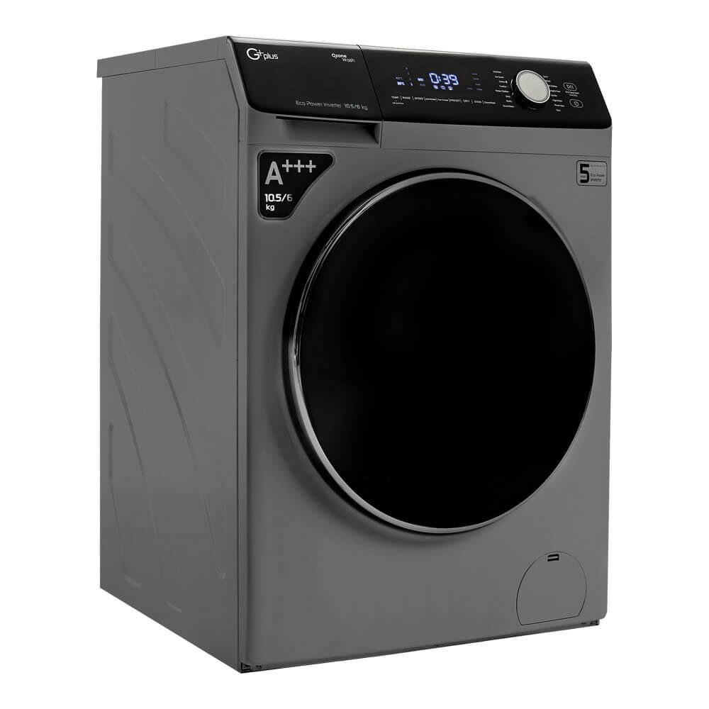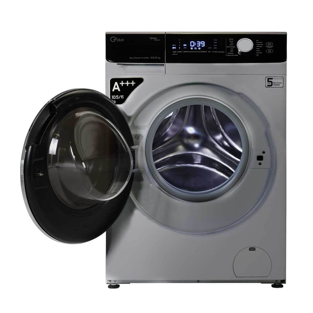 ماشین لباسشویی جی پلاس GWM-M104T با مخزن 10.5 کیلویی، دارای 16 برنامه اصلی و 9 برنامه تکمیلی مانند شستشوی سریع و قابلیت ضد عفونی کردن است.