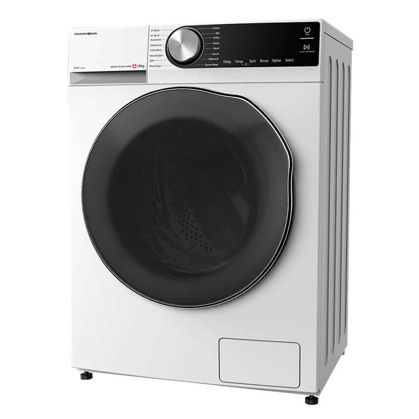 ماشین لباسشویی پاکشوما BWF-40107 WT نوع درب از جلو بوده و دارای بدنه سفید رنگ می باشد. نمایشگر LED موجود در ماشین لباسشویی پاکشوما BWF-40107 WT به شما اطلاعات مهم شستشو مانند دمای آب، نام برنامه و زمان باقی مانده را نمایش می دهد. این محصول با توجه به مخزن 9 کیلویی که دارد، بیشتر برای خانواده هایی با جمعیت متوسط تا زیاد مناسب است.