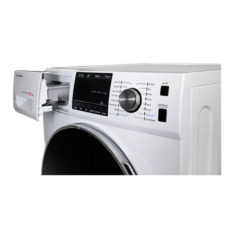 موتور اینورتر BLDC – ورودی مستقل آب سرد و گرم جهت صرفه جویی در مصرف انرژی – دارای طلق محافظ رو درب جهت ایمنی و جلوگیری از اتلاف انرژی – قابلیت تاخیر در زمان شروع شستشو1 تا 24 ساعت – قابلیت آبکشی اضافه البسه – دیگ الماسه – قابلیت تنظیم دمای آب (20 درجه تا 90 درجه سانتیگراد) – قابلیت تنظیم سرعت دور خشک کن (600 تا 1400 دور بر دقیقه) – برنامه شستشوی اقتصادی ECO البسه نخی و کتان (مقرون به صرفه) – برنامه شستشوی ملحفه و روتختی، البسه حجیم و ضخیم، رنگی، کودکان، ورزشی – برنامه شستشوی خودکار دیگ |