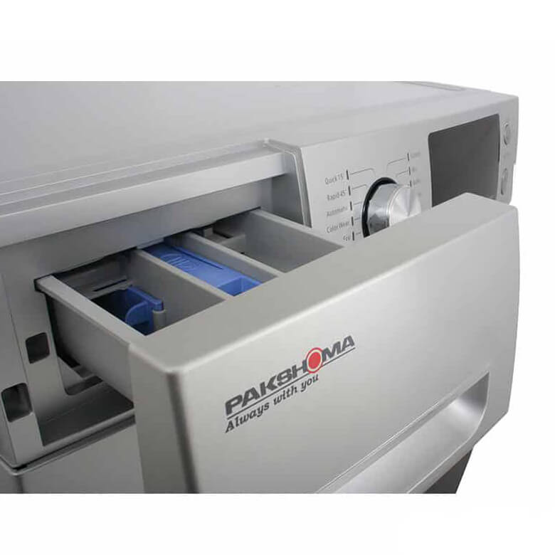 مشخصات لباسشویی پاکشوما مدل 80413اگر یک یا تعدادی لباس از شستشو جا بماند، می توانید از قابلیت “ADD GARMENT” ماشین لباسشویی پاکشوما WFI-80413 WT استفاده کنید. به این ترتیب قادر خواهید بود لباس ها را حتی در اواسط فعالیت شستشوی دستگاه نیز به محفظه دیگ اضافه کنید.