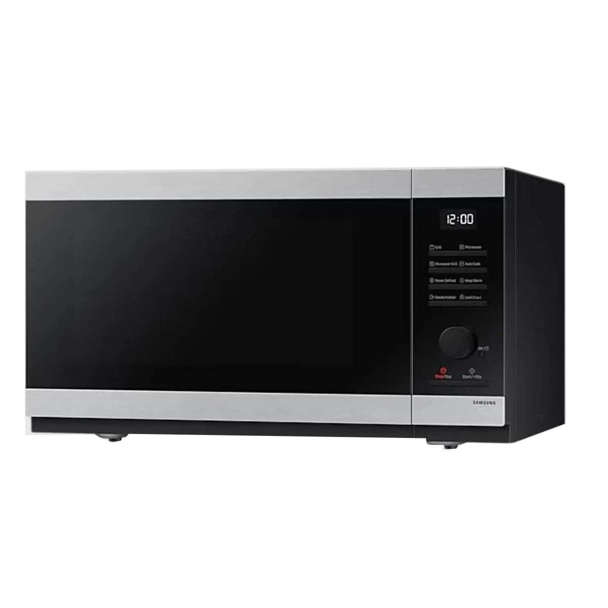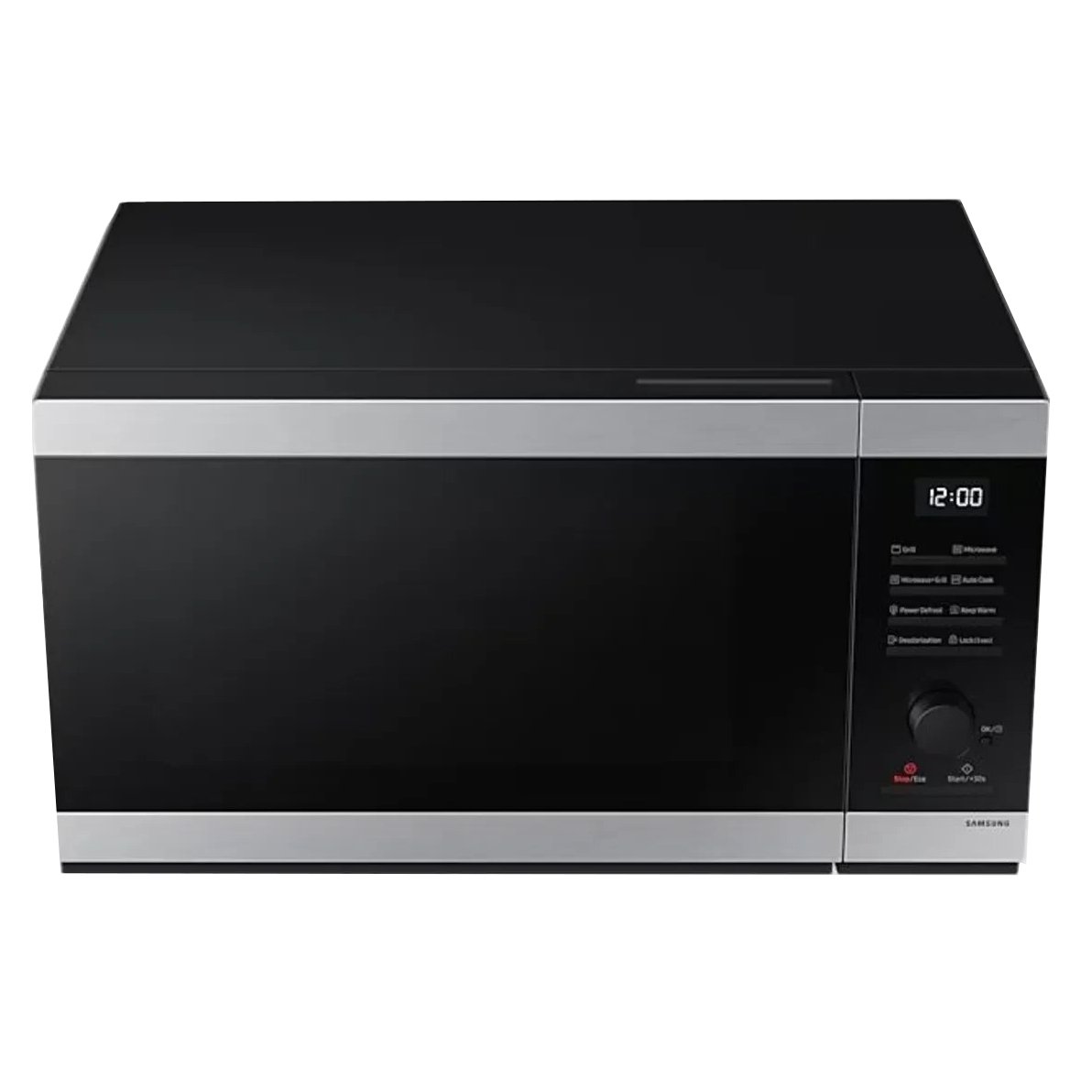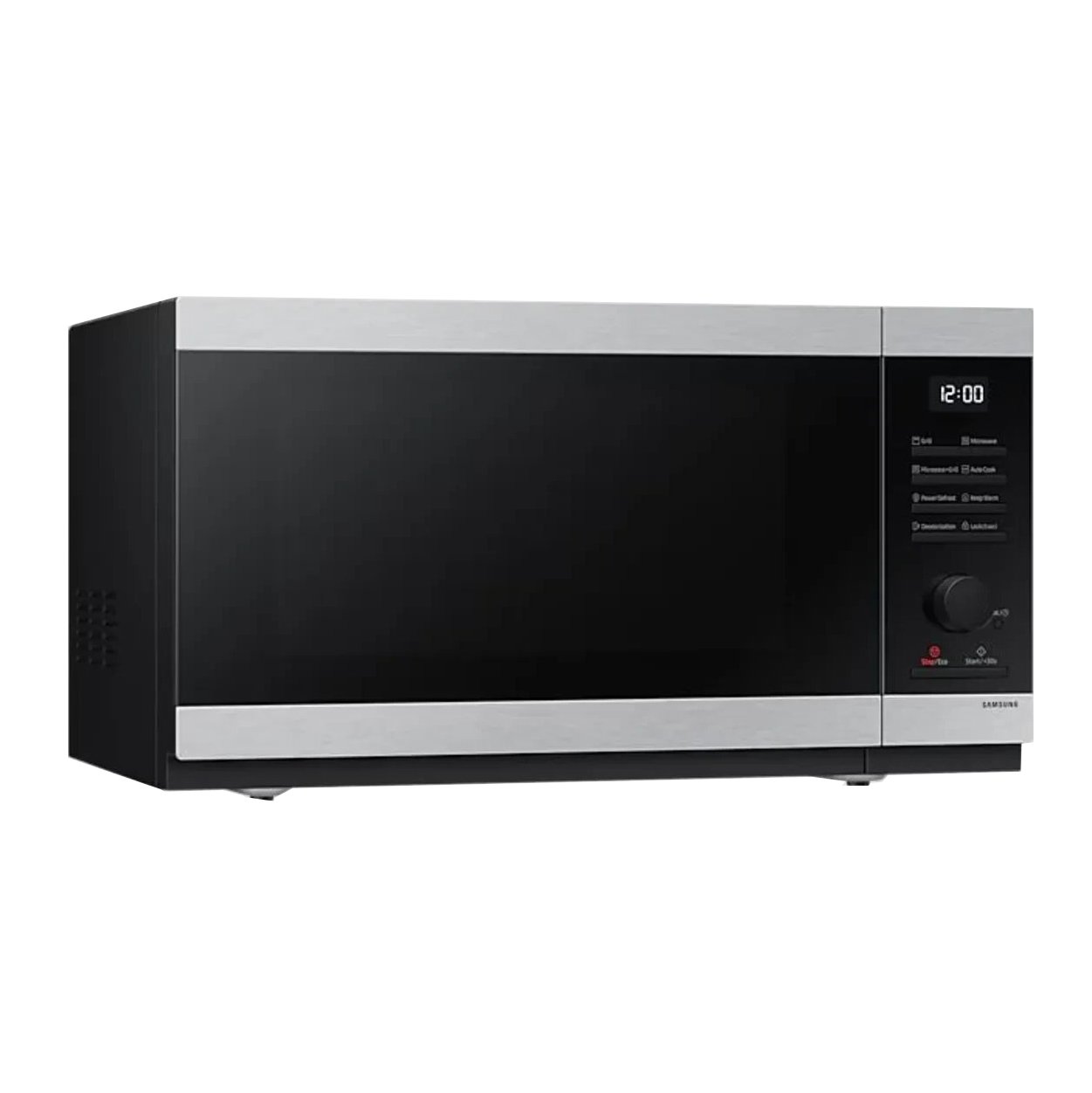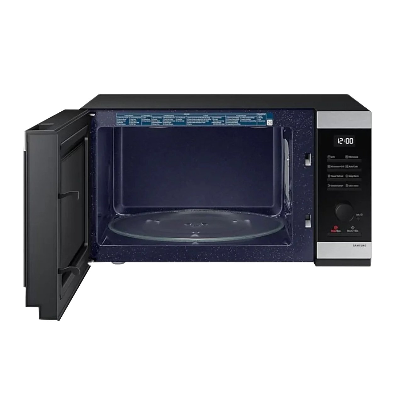 مایکروویو سامسونگ MG40DG5524AT مجهز به ظرفیت 40 لیتر، سیستم توزیع سه گانه، قابلیت گریل، یخ زدایی، برنامه پخت ترکیبی و صفحه گردان 360 میلی متری است.