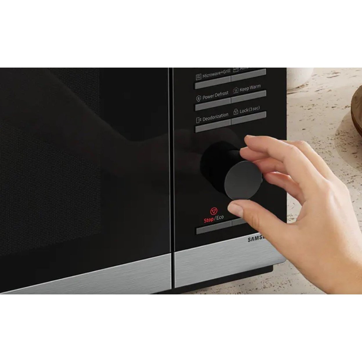 صفحه گردان 360 میلی متری امکان توزیع یکنواخت گرما را فراهم کرده و به کمک سیستم توزیع سه گانه (TDS)، تمام نقاط غذا به طور مساوی پخته یا گرم می شود. این ویژگی می تواند در خصوص در پخت دسر و غذا های حساس، نقش مهمی ایفا کرده تا نتیجه مطلوب حاصل شود. بر روی بدنه مایکروویو مدل 5524 سامسونگ دکمه های فیزیکی و چرخشی و نمایشگر LED جهت نمایش زمان، برنامه و وضعیت پخت، تعبیه شده است.