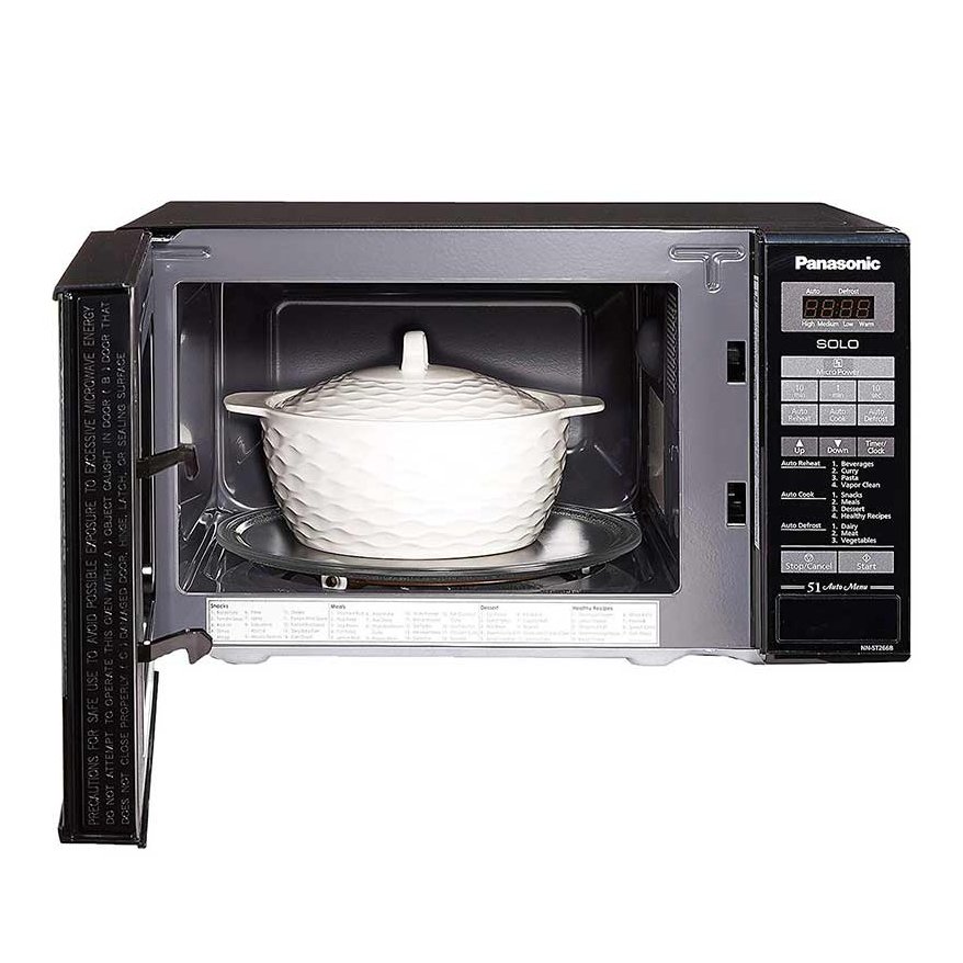 مایکروویو پاناسونیک NN-ST266B با توان 800 وات مجهز به 51 برنامه پخت، عملکرد یخ زدایی، پخت خودکار، اعلام هشدار پایان برنامه و نشانگر روشن بودن دستگاه می باشد.