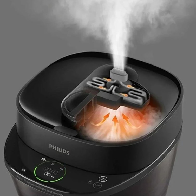 از نکات مثبت مولتی کوکر 2151 فیلیپس می توان به قابلیت تهیه و پخت غذا تا 50 درصد سریع تر از اجاق گاز اشاره کرد. این ویژگی به واسطه وجود فناوری تخلیه سریع بخار Rapid Pressure Release، به دست آمده که با کاهش فشار داخلی در کمترین زمان ممکن، موجب حفظ بافت و طعم طبیعی مواد غذایی میشود. همچنین با وجود سیستم هوشمند کنترل طعم Taste Control، بهترین طعم ممکن را از غذا تجربه کنید.