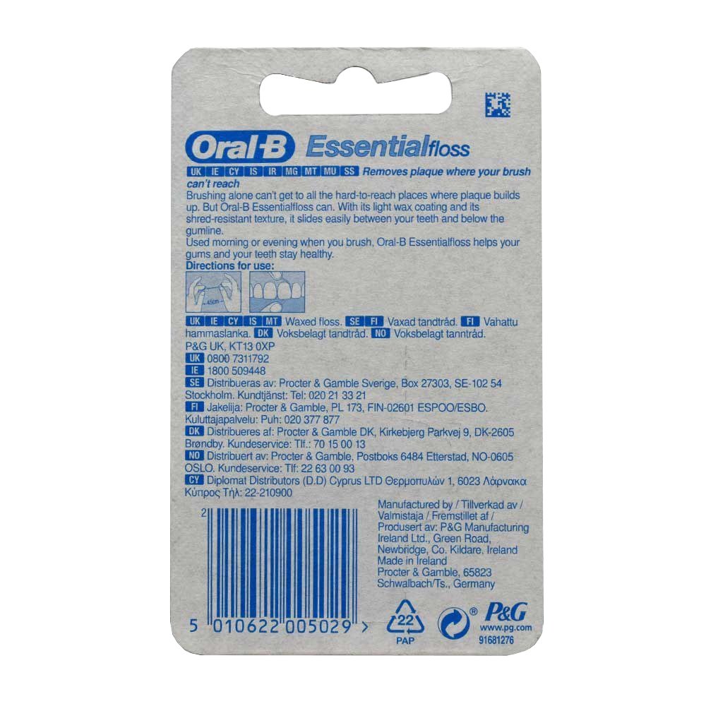 نخ دندان اورال بی Essential دارای فلوراید برای تقویت مینای دندان، اسانس نعناع و موم عسل بوده و گزینه ایده آل برای افرادی است که لثه های حساس دارند، می باشد.