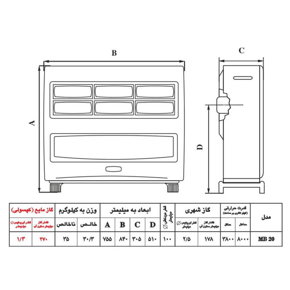 بخاری گازی نیک کالا MB20 مدل مهتاب