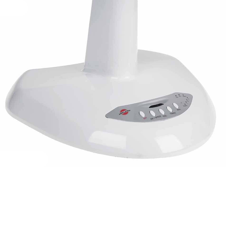 پروانه پلاستیک 3 یا 4 پره (تعداد پره ها برخلاف قطر پره ها در حجم باددهی تاثیری ندارد) – دارای کلید تنظیم سرعت در سه حالت بصورت لمسی با نشانگر LED – دارای تایمر 12 ساعته با فواصل 1 ساعت – دارای حالت ریتم جهت تغییر دور اتوماتیک پروانه – کم مصرف – دارای گارد محافظ ایمن – دارای موتور مجهز به فیوز حرارتی – دارای قابلیت تنظیم آسان زاویه وزش باد به صورت جغجغه ای – قابلیت تنظیم گردش افقی با کنترل از راه دور – دارای نشان استاندارد ایمنی محصول |