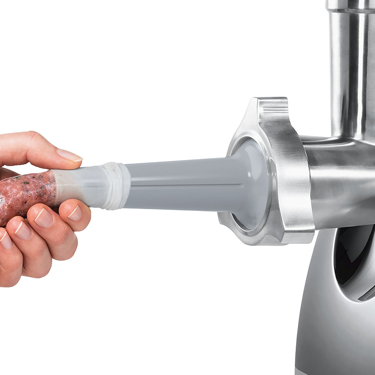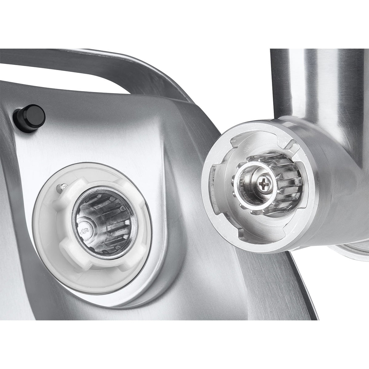 کارکرد چند کاره – نازل های فرم دهنده – سینی بزرگ برای نگهدارنده مواد – اهرم دستی برای هدایت مواد – محفظه مخصوص لوازم جانبی – قابلیت شستشوی قطعات در ماشین ظرفشویی – لوله ناودانی (گلویی) استیل – کلید روشن / خاموش – محافظت در برابر اضافه بار – پایه لاستیکی برای ثبات بیشتر دستگاه – محفظه برای جمع كردن سیم برق – نشانگر روشن بودن دستگاه – رنده درشت، برش ورقه ای متوسط