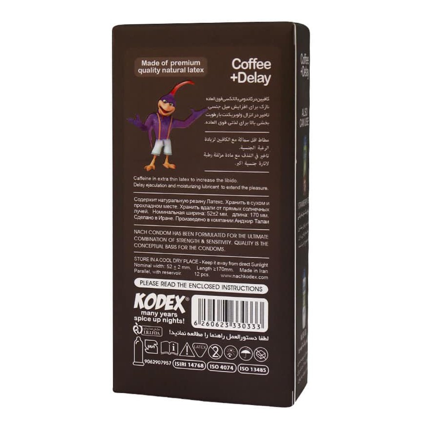 کاندوم ناچ کدکس کافئین دار فوق نازک، حاوی بنزوکائین و عصاره قهوه برای تأخیر مؤثر و افزایش انرژی و و ماده لوبریکانت برای تحریک فوق العاده می باشد.