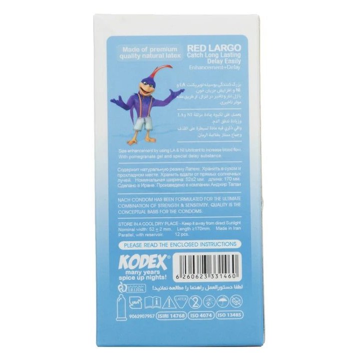 کاندوم کدکس لارگو قرمز Red largo یک محصول چندمنظوره و پیچیده است که با هدف رسیدگی به چندین نیاز کلیدی در یک رابطه جنسی طراحی و عرضه شده است. نام لارگو به معنای بزرگ، اشاره مستقیمی به یکی از ویژگی های اصلی این محصول دارد؛ افزایش موقت حجم. این خاصیت از طریق ترکیبات گیاهی و شیمیایی مانند نیاسین و اِل-آرژنین در لوبریکانت روی کاندوم حاصل می شود که با تحریک جریان خون موضعی، باعث افزایش سایز می شوند، امری که می تواند اعتماد به نفس آقایان را به طور چشمگیری افزایش دهد.