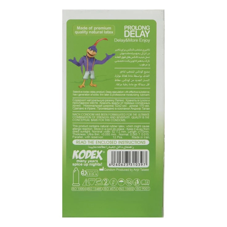 کاندوم کدکس پرولانگ دیلی Prolong Delay تأخیر طولانی انزال با ماده موثره. نسل جدید لاتکس نازک با دو برابر روان کنندگی برای رابطه ای طولانی و ایمن.