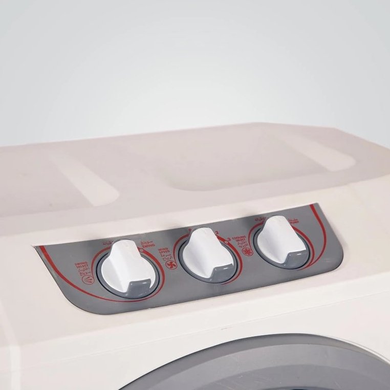 گردش اتومات پره های عمودی – گردش دستی پره های افقی – کلید های پنل مکانیکی (Selector) – پر کردن مخزن آب به صورت دستی و اتصال به شیر آب شهر – دارای چرخ جهت جابجایی آسان – پمپ آب – ابعاد دریچه 44×44 سانتی متر – مصرف آب 15 لیتر – قابلیت Swing و پراکنده ساختن هوای خنک |