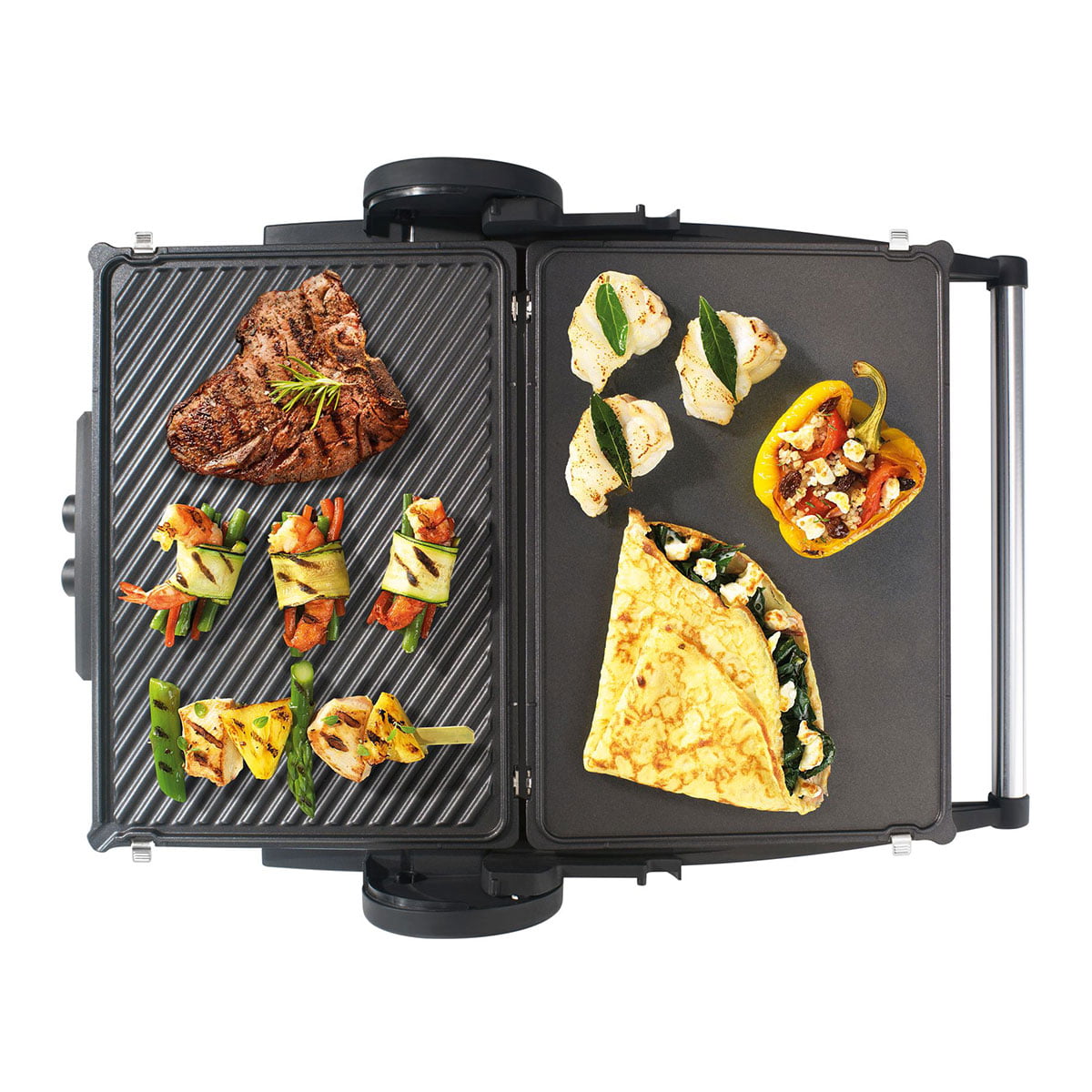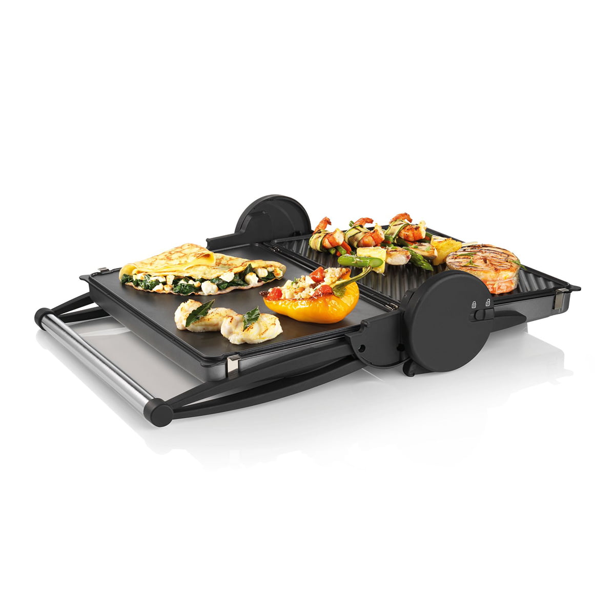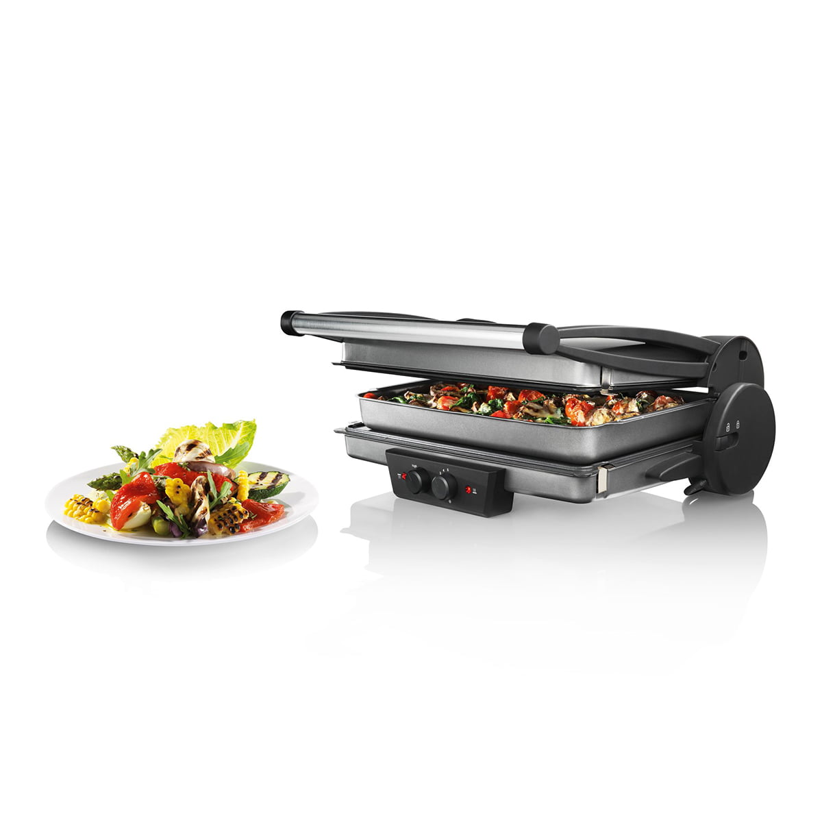 کنترل دمای جداگانه برای صفحه های بالایی و پایینی – تنظیمات دماهای مختلف همراه با تنظیم یکپارچه خاموش / روشن شدن – قابلیت شستشوی قطعات در ماشین ظرفشویی – تمیز کردن آسان صفحه های گریل – لولای متحرک – چراغ پایلوت – صفحات با قابلیت چکه گیری روغن – صفحات جداشونده – صفحات مورب |